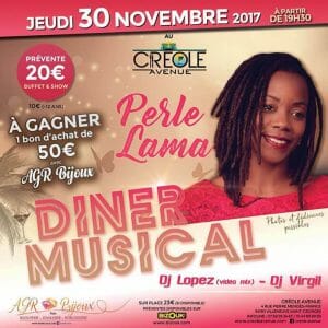 DÎNER MUSICAL avec PERLE LAMA JEUDI 30/11 au CRÉOLE AVENUE