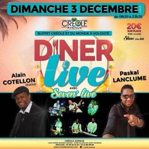 Dîner Live avec Seven’ Live (Alain Cotellon & Paskal Lanclume) Dimanche 3/12 au CRÉOLE AVENUE