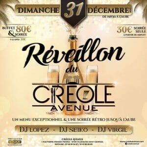 Réveillon du Créole Avenue Dimanche 31 Décembre 2017, BUFFET EXCEPTIONNEL (une queue de Langouste, fricassé de Lambi, divers gratins, beaucoup de nouveaux plats…)