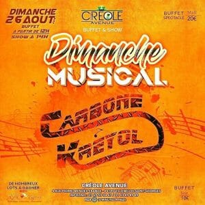 Ce dimanche midi Carbon Kréyol accompagnera votre repas au Créole Avenue.