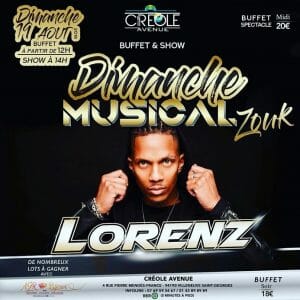 Ce dimanche midi Lorenz accompagnera votre repas au Créole Avenue.