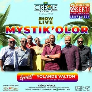 Ce dimanche midi Mystik’olor & Yolande Valton accompagnera votre repas au Créole Avenue.