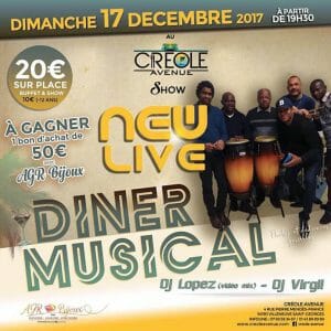 DÎNER MUSICAL avec NEW LIVE DIMANCHE 17/12 au CRÉOLE AVENUE