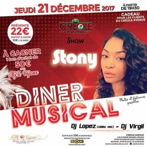 DÎNER MUSICAL avec STONY JEUDI 21/12 au CRÉOLE AVENUE